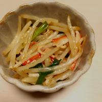 もやしはしっかりと水気を切ってから電子レンジで加熱すると、シャキシャキ感が増します。 カニカマは太いと味がなじみづらくなるので、細めに割いていただくとおいしく仕上がりますよ。