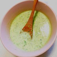 立派なズッキーニが手に入ったので生クリーム無しで、1歳の子には塩胡椒無しであげました。