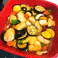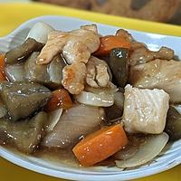 ナスは大き目でも最後柔らかく仕上り、黄パプリカも入れ、鶏むね肉の簡単酢豚風😊