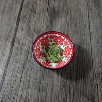 - 2 耐熱容器に1と水を入れて、ふんわりラップをかけ、600Wの電子レンジで1分程加熱します。一度取り出して混ぜ合わせ、ふんわりとラップをかけ、600Wの電子レンジでさらに1分程加熱し、すり鉢に移し、細かくつぶします。
