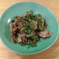 菜の花売ってなくって春菊ベースでシタ。塩振りレンチンデス。
