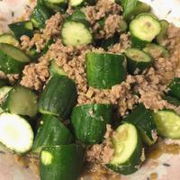 きゅうりを肉味噌と和えてみました。きゅうりの食感と肉味噌の旨味がよく合います。肉味噌と和えた直後はきゅうりの歯応えが残り、和えて少し時間を置くと、きゅうりに味が馴染んで美味しいです。是非お試しくださいね。