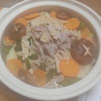 豚バラ100gちょっと、白菜1/4の半分(レタスが高かったので)、ネギ1/2、大根の葉いれました。つけ汁と一緒に食べるのがとてもおいしかったです!