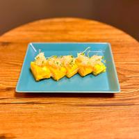 出汁巻き卵にチーズイン!コンソメとオリーブオイルで、洋風の味わいです。ぷるぷるふわふわ食感の卵に、とろりと溶け出したモッツァレラチーズのコクが絡み合って、やみつきになる美味しさです。子供から大人まで幅広く喜んでもらえる一品です。