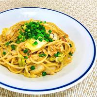 スパゲティを茹でるお湯は2L以上とたっぷりめで。 スパゲティを炒めるときは、サラダ油よりもバターを使用した方が、風味が断然良くなりますよ。 しょうゆは炒めすぎると風味が飛んでしまいますので、フライパンを火からおろす直前に入れてください。