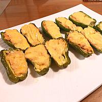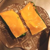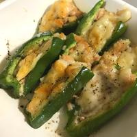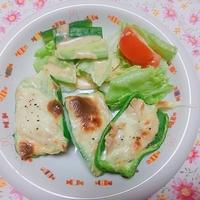 ピーマンの上に、とろけるチーズとピザようチーズの2つを乗せました!