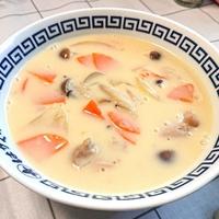 ねぎを忘れましたが、まろやかでおいしかったです。味噌っぽくない洋風のお雑煮(?)という感じでした。