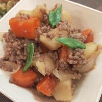 ・汁がギリギリの量。完成時にはほぼ汁がなくなる。お肉の量を増やした時やすぐ食べれずに再加熱が必要な場合は、水とその他の調味料の量を増やしたほうがいいです。
