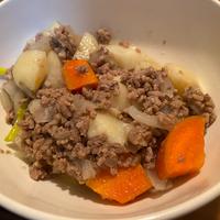 ①肉じゃがの半分を鍋に移し、水を450mlくらい入れて沸かす。