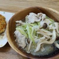 白菜とろとろ、きのこが肉と出汁と合っていて