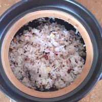 小さい土鍋ですが、私一人分一合炊くのにちょうど良くて、水200ccで美味しく炊けました。