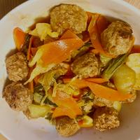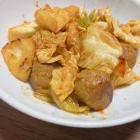 キャベツと青梗菜のピリ辛肉団子炒め レシピ・作り方