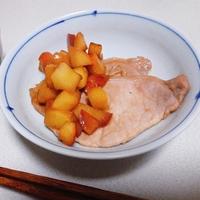 りんごと豚肉が良く合います。ソースに片栗粉でとろみを付けたので、お肉と良く絡み合いました。