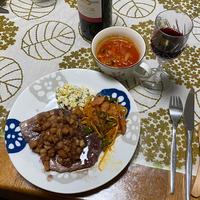遅く食べる人がレンジで温めても良いように、付け合わせはマッシュポテトといんげん人参のソテーにしました。