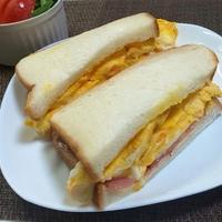そのままだと多いので、パンは5枚切りを半分に、卵は2個で。