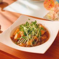 - 4 皿に盛り付け、かいわれ大根を乗せたら完成です。