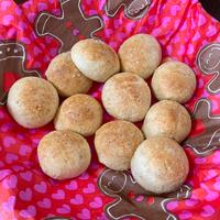 半量で、お砂糖なし、粉チーズ15、薄力粉45.BP2.ピザチーズ練り込み、180°15分。