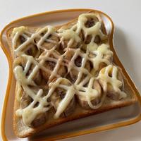 - 2 食パンに1を並べてマヨネーズで線描きし、オーブントースターで焼き色が付くまで5分焼きます。