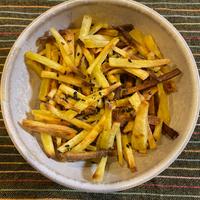 オーブンで 揚げない生姜芋けんぴのご紹介です。洗い物も少なく、簡単にお作りいただけるのでおすすめです。お好みで生姜の代わりにはちみつやメープルシロップ、お塩をまぶしても美味しいですよ。ぜひお試しください。