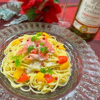 玉ねぎをパスタに入れるのが個人的にあまり好きではないのでw赤パプリカと黄パプリカを入れて食感と彩り増ししてみた◎