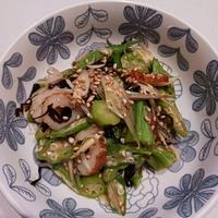 - 4 ボウルにごま油、2、3、塩昆布を加えて和え、味がなじむまで5分程置きます。