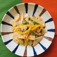 しいたけと黄色パプリカを追加しました。たけのこがレシピ動画の様に切れていませんが、料理酒とオイスターソースだけでこんなに簡単に美味しく出来るとは!春雨70gで3人分にしましたが、もっと入れても良かったかな。
