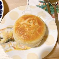 中身は家にある具材に置き換えました。小さいココットで作ったので、パイシート1枚を4等分にして3個作り、余った一枚を雪だるまの型抜きをして貼り付けました⛄️おいしかったです!
