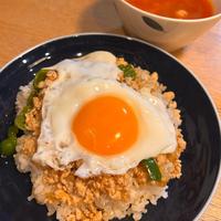 撮影後は、バターで周りこんがり焼いた目玉焼きは崩して混ぜ混ぜ、大好きなパクチーもたっぷり混ぜ混ぜして頂きました。お米はジャスミンライス。ナンプラーはやっぱり使ったほうがいいですね。風味豊かなガパオライスになりました。おすすめです!