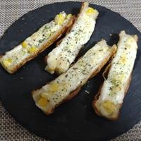 - 3 アルミホイルを敷いた天板にのせ、オーブントースターでピザ用チーズが溶けるまで5分程焼きます。
