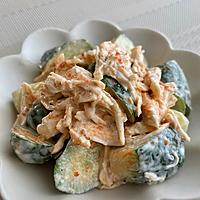 マヨの味付けを、のり、めんつゆ、胡麻油でサラダうどん風に。大人はレシピ通り、豆板醤入りピリ辛で最高です。