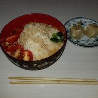 夜食。トッピングはあるもので。さっぱりしていて美味しかったです👏