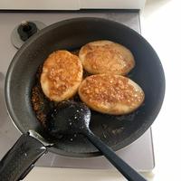 - 4 フライパンを中火で熱しサラダ油をひき3を入れて両面に焼き色が付くまで合計5分ほど焼いたら火から下ろし、皿に盛り付けてできあがりです。