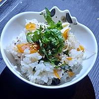 炊飯器は半分迄 満タンは失敗するね。ワカメは炊き上がり次第入れて混ぜてむらします。serveする時に大葉とゴマふりかけます。塩は使わずワカメの塩のみ
