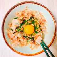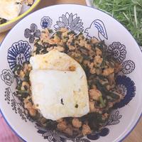 鶏ミンチで代用☆丼にしました☆半熟卵をのせました☆四川風豆板醤を多めに入れました☆辛くて美味しかったです(*´ω`*)