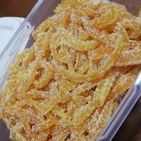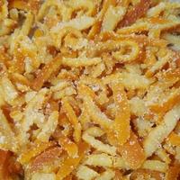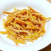 煮た皮をオーブンで乾燥させてからグラニュー糖をまぶしました