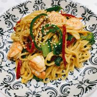 刺激的な辛味がクセになるグリーン焼きそばのご紹介です。プリプリしたエビの食感に彩り綺麗な野菜を加え、いつもと違う焼きそばに仕上げました。ナンプラーのコクと旨味が絶妙で、とてもおいしいです。ランチにいかがでしょうか。ぜひお試しください。