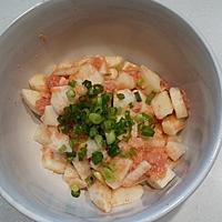 - 3 ボウルに1、2、めんつゆを入れ、よく和えます。