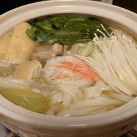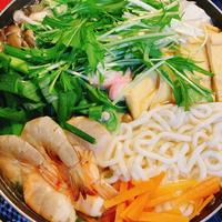 寒い日に、具だくさんのうどんすきはいかがでしょうか。鶏肉やエビ、野菜の旨味がたっぷりで食べ応え満点の一品です。味つけは白だしだけなので簡単にお作りいただけますよ。