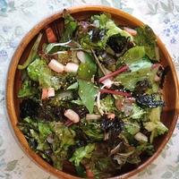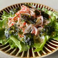シンプルな調味料でサッと作れる手軽さが魅力的なレシピです。カニカマのごろっとした食感と、サニーレタスのシャキシャキ感が心地よい一品。味付けの決め手は、鶏ガラスープの素とごま油で、韓国海苔の香ばしさが全体を引き締めます。カニカマの彩りが食卓を華やかにしてくれます。アレンジも自在で、ワカメやアボカド、水菜を加えても美味しく仕上がります。