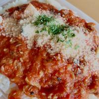 トマト缶ではなく食塩無添加トマトジュースに少量のケチャップで代用。オリーブとケッパーなしで、キノコを入れました。だいぶレシピとずれてしまってるかもですが、それでもとても美味しくできます!