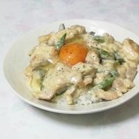 鶏もも肉とアスパラガスのカルボナーラ丼 レシピ・作り方
