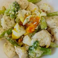 アスパラなかったから、きのこ入れて、白身も一緒に混ぜた!美味しい!(^O^)☆