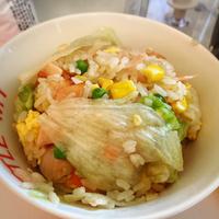 いつものネギをレタスに変えるだけでぱぱっとお洒落なチャーハンの出来上がり♡