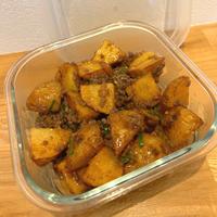 - 4 ジャガイモを入れ、ひき肉に絡めたら完成です。