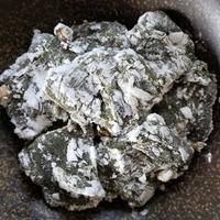 - 5 さらに4を600Wのレンジで2分ほど加熱して取り出してよく混ぜ、ひとまとめにします。片栗粉を散らしたバットの上に乗せさらに上から片栗粉をまぶします。