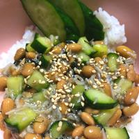 生卵が苦手なので、たまご醤油だれ納豆を使いました。食感のアクセントにきゅうりを入れました。たくあんの代わりに、きゅうりのぬか漬け。朝からスルスル美味しかったです。