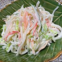 - 3 カニカマは手でほぐします。