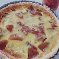 シナモン香る梨のコンポートが入ったフランです。タルト生地の代わりにパイシートを使用しています。サクサクのパイと梨のコンポートフランを一緒に食べると美味しいです。材料は多めですが、コンポートを作って、生地を混ぜて焼くだけなので簡単です。是非お試しくださいね。