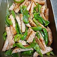 - 1 スパムは拍子木切りにします。 ピーマンは5mm幅に切ります。
