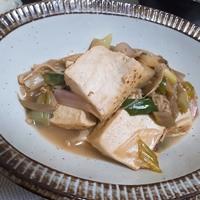 木綿豆腐で片栗粉まぶし油で炒めてから作りました。ほっこり優しい味で美味しかったです。